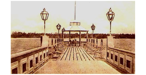 A Praça Fausto Cardoso, um dos primeiros espaços livres de Aracaju, conforme Oliveira e Pina Neto (2017), teve o seu eixo demarcado pela construção, em 1860, de um atracadouro às margens do rio Sergipe (Fig. 4), para a chegada do Imperador Dom Pedro II e sua comitiva, que visitaram uma cidade ainda em obras. Conhecida como Ponte do Imperador, passou por reformas no século XX e sua estética atual pode ser visualizada na Figura 5.
