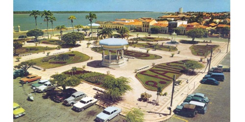 De acordo com Oliveira e Pina Neto (2017), entre as décadas de 1940 e 1950, ocorreu uma renovação na paisagem urbana da Praça Fausto Cardoso, quando surgia uma linguagem moderna nas edificações que aderiam à verticalização e uma nova plástica, densa e com uma carga simbólica marcante, remetendo à metropolização e ao capitalismo. Todavia, ao se analisar as imagens construídas a partir das fotografias das figuras 14 e 15, capturadas em visada na diagonal da Praça Fausto Cardoso, entre as décadas de 1960 e 1970, respectivamente, percebe-se que entre aquele período ocorreu um certo antagonismo na esfera imagética.