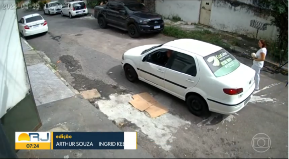 Repórter Rogério Coutinho: O motivo da dor tem a ver com preconceito e intolerância. Elas foram surpreendidas pela reação de um motorista de aplicativo que se prontificou a atender a um chamado. Nas imagens o carro chega e é recebido pela dona Vera, que está vestida apenas de branco. Ela é a primeira pessoa a ter contato com o motorista. Em seguida vem as netas de 8 e 13 nos e a nora, a Taís, todas também de branco, mas vestidas com roupa de santo e com ojá, esse pano que vai na cabeça. Segundo a família, quando o motorista as vê desiste da corrida.