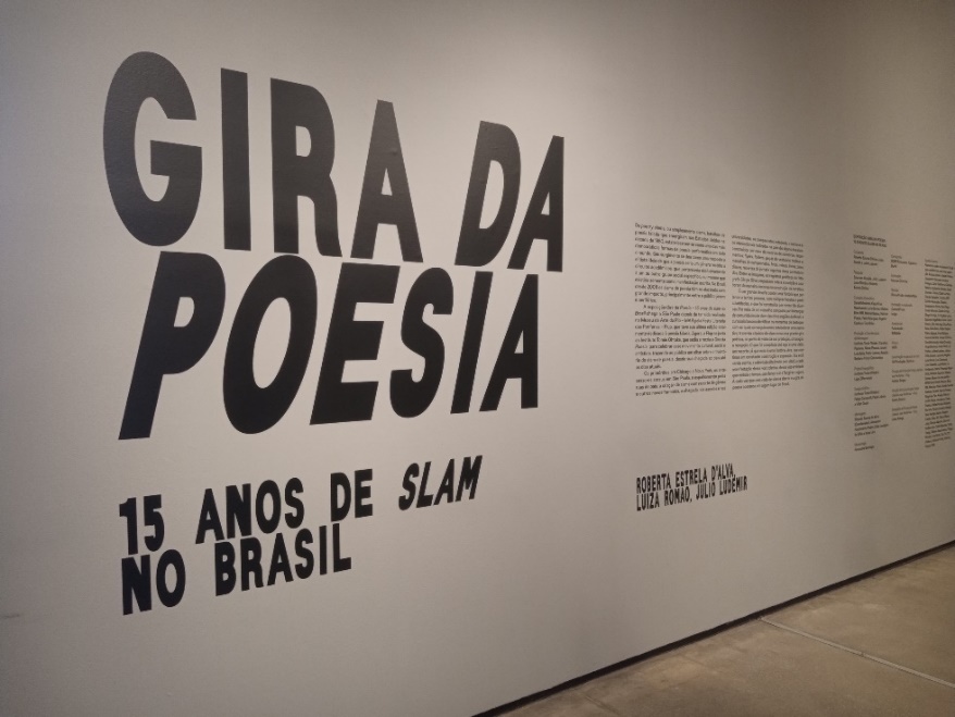 Realizada pela primeira vez no Museu de Arte do Rio – MAR durante a programação da Festa Literária das Periferias – Flup em 2023, a exposição Gira da Poesia – 15 anos de slam no Brasil reuniu a história das diversas vozes que fizeram e ainda fazem o slam no país. É a materialização de uma trajetória da oralidade periférica. Em 2024, a exposição chega à cidade de São Paulo no Instituto Tomie Ohtake (Figura 1).