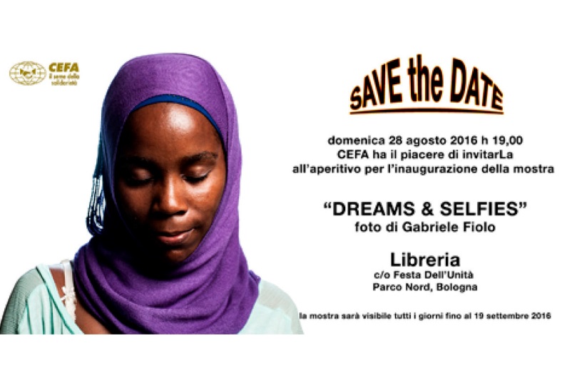 A primeira fotografia a ser explorada foi encontrada como destaque no folder da mostra fotográfica do Programa “Arte Contra a Pobreza”, realizada pelo CEFFA-Tailândia, ONG italiana que trabalha com a arte como ferramenta para combater a pobreza e promover o desenvolvimento social em diversas iniciativas, na Tanzânia (África Subsaariana) e outros países. O folder e a mostra se encontravam no espaço da Festa da Unidade (2016), comemorativa da unificação do estado italiano, como parte da programação. A mostra era composta por um conjunto de fotografias de rostos, e era resultante de um projeto fotográfico dirigido pelo fotógrafo Gabriele Fiolo junto a jovens artistas das cidades de Dar es Salaam e Nairobi, na Tanzânia, visando “donare um’immagine forte e spensibilie a piu di 300 giovani (...) attraverso la realizazzione del loro portifólio” (dar uma imagem forte e comercializável a mais de 300 jovens através da realização do seu portfólio) (folder da mostra Dreams & Selfies).7