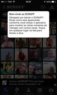 O Scruff (assim como o Grind, Growing, Hornet, Romeo) é um aplicativo que utiliza os serviços de posicionamento global (GPS) oportunizando via aparelho celular a partilha de localização espacial e informações individuais (foto, idade, peso, altura e uma descrição pessoal) criando uma rede virtual de homens gays. Uma vez na loja do App, o usuário através do download do programa insere seus dados e efetua o cadastro na plataforma.