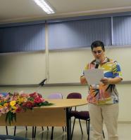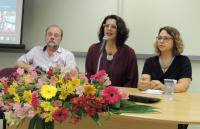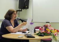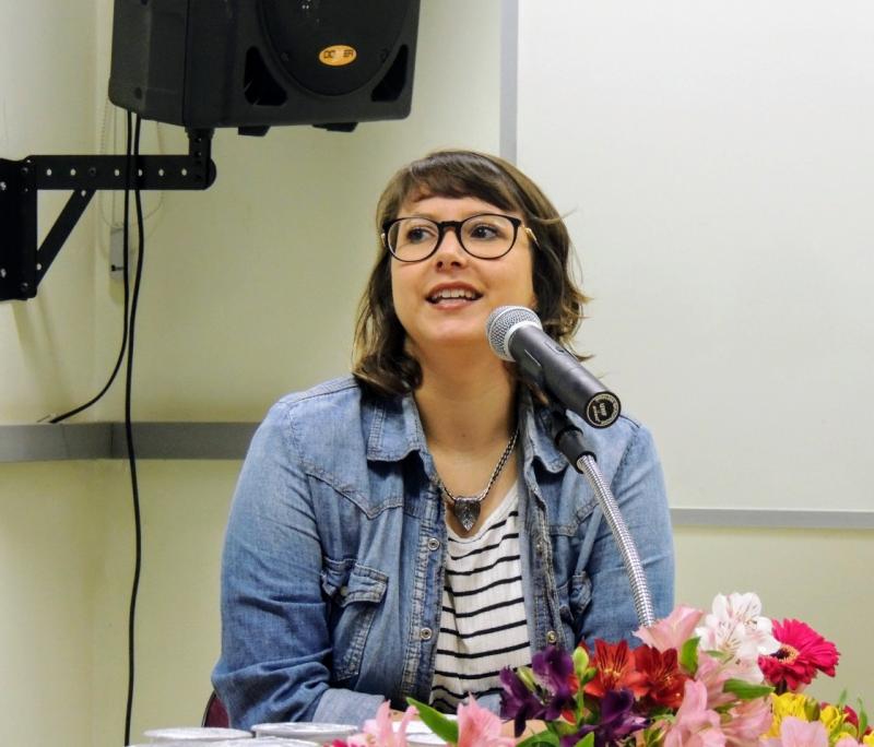 Verli Petri foi uma das convidadas, vinda do Rio Grande do Sul, da Universidade Federal de Santa Maria, para apresentar o seu trabalho. Toda a sua carreira acadêmica foi dedicada a área das letras e apresentou sua reflexão a respeito de artefato, a partir de um dicionário da Língua de Fronteira, construído em conjunto com alunos do ensino fundamental de escolas públicas da cidade de Itaqui. “Estar aqui pra mim hoje foi muito importante porque eu fiz uma reflexão sobre um material que eu já havia produzido há algum tempo, mas agora sob um novo prisma”. A respeito do processo da construção do artefato, ela contou que os alunos demoraram um pouco para tomar consciência da língua, mas que quando aconteceu foi maravilhoso, “porque falar dessa língua que é nossa e é tão diferente da dos outros, nos dá um lugar no mundo”, pondera.