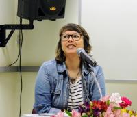 A alegria e emoção do momento dos lançamentos acompanhou os participantes para o coquetel que se seguiu. As conversas acabavam em comentários sobre como tudo havia sido bonito, emocionante e surpreendente. Camila Biazus afirmou, com um sorriso no rosto, o quanto foi significativo participar. “Foi um evento incrível, que me fez repensar muito assim, o meu lugar enquanto pesquisadora, mas, enquanto professora. Eu acho que isso alimenta a minha prática. Eu volto mais energizada com tudo o que eu vi aqui”.